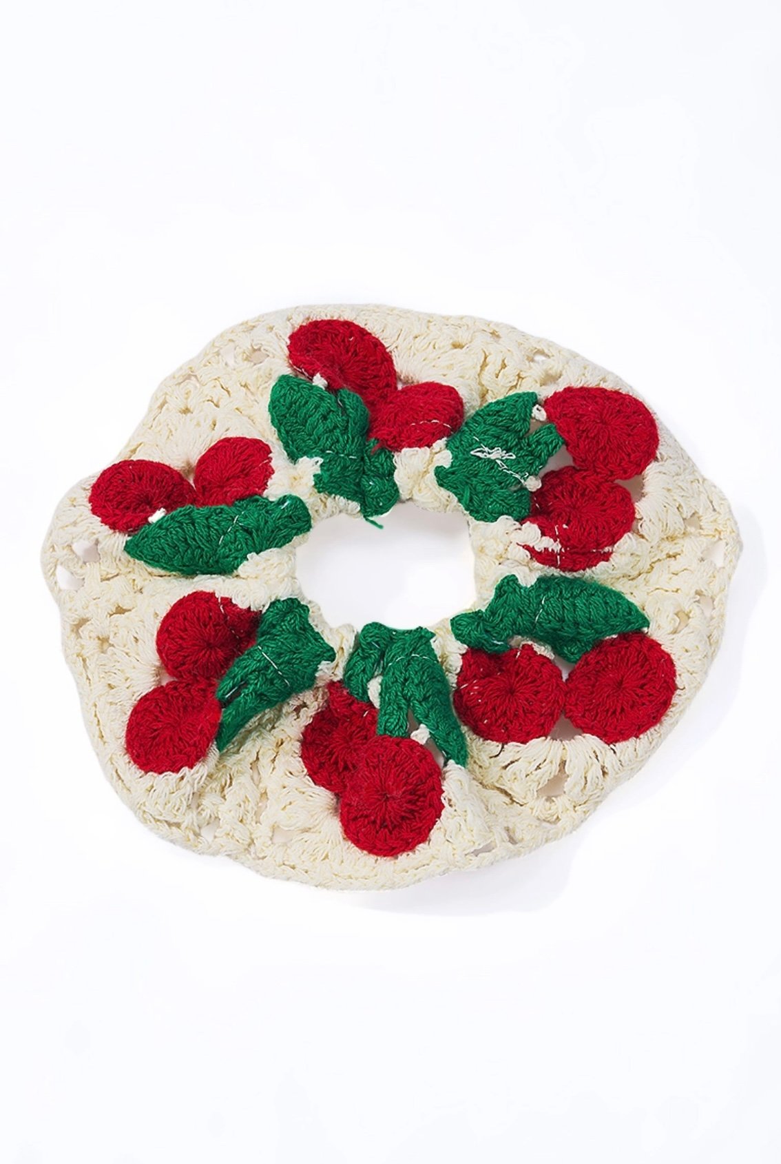 Crochet Elastic Scrunchie with Cherry Pattern